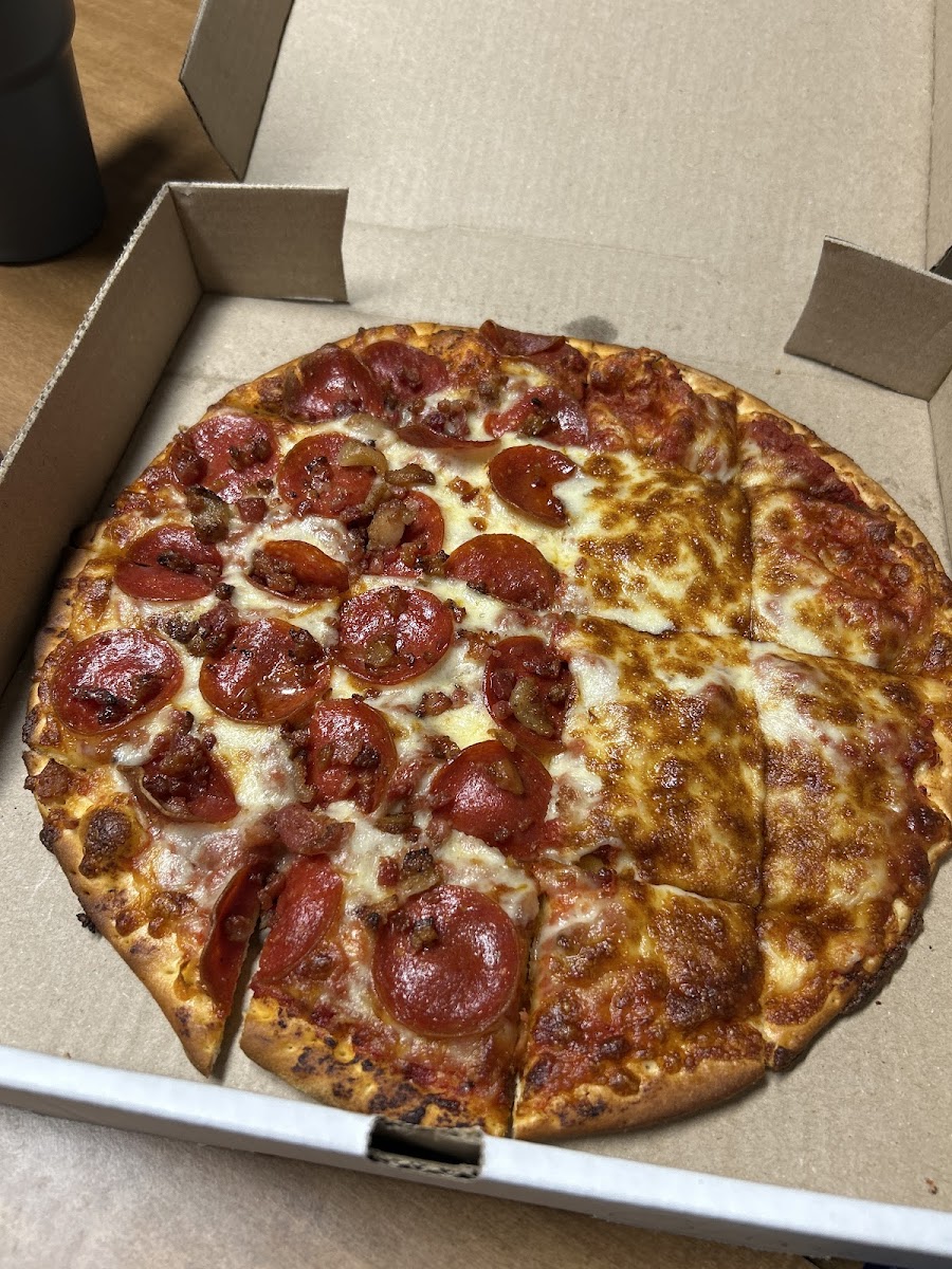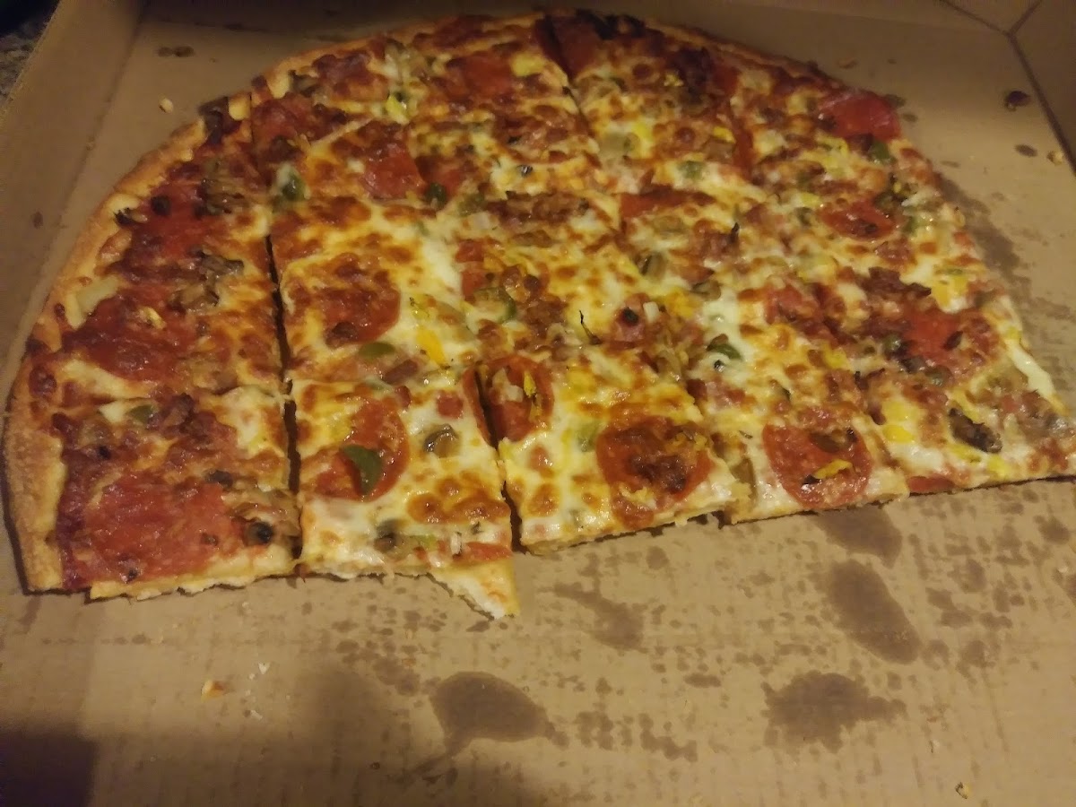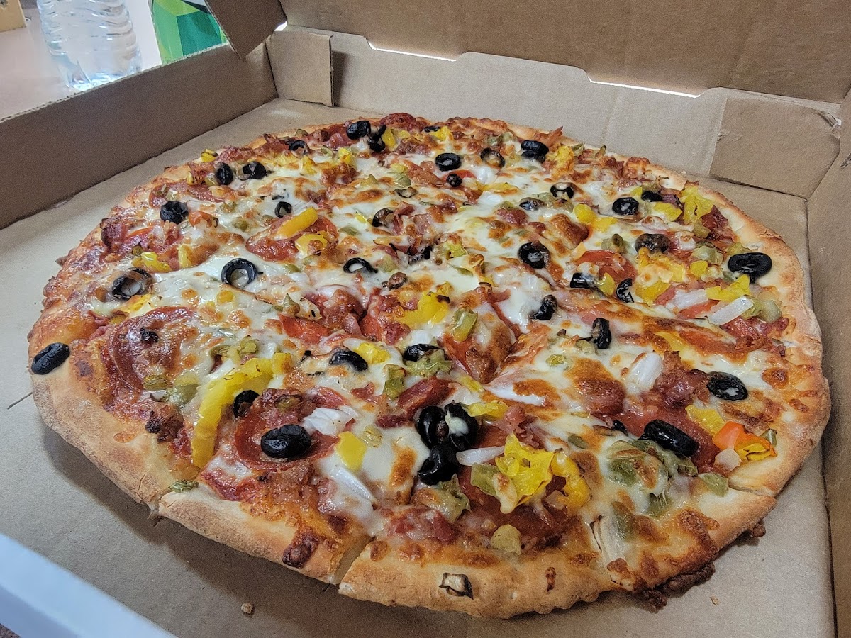 Very good pizza. Service is top notch. Every time we take our granddog the pizza shop employee's go above and beyond to make puppy happy. Thanks for a great service close to home.